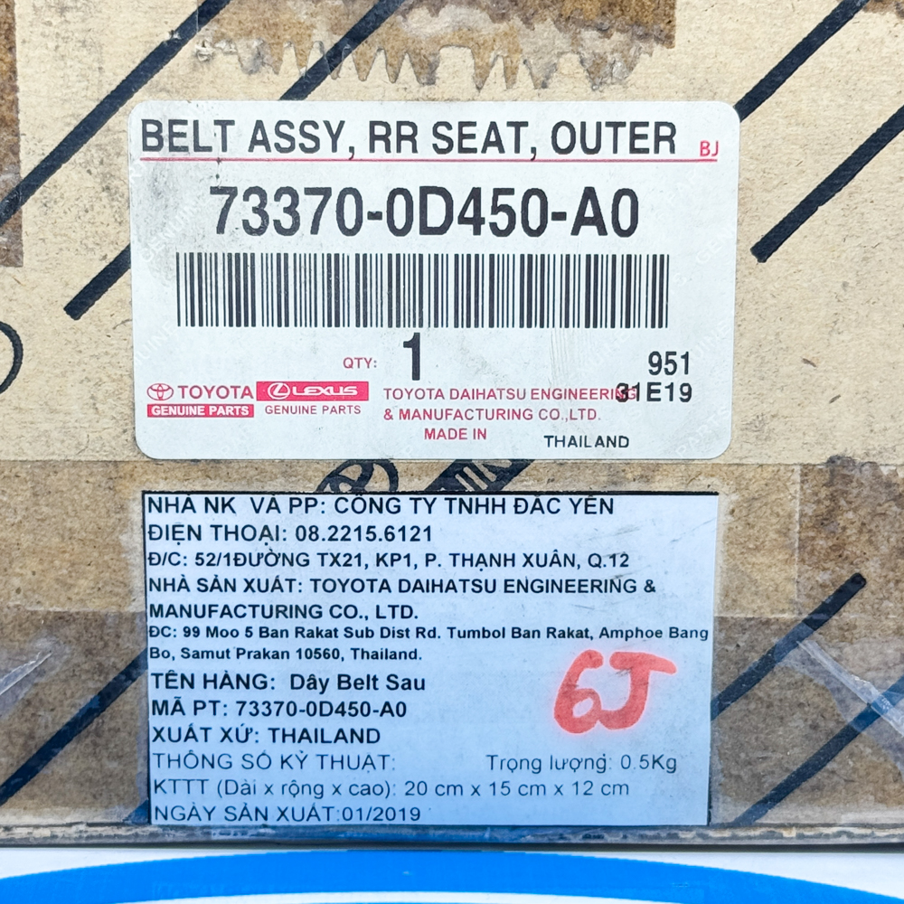 Dây Belt ( Đai An Toàn Sau ) Vios 2023 73370-0D450-A0, 73360-0D510-A0