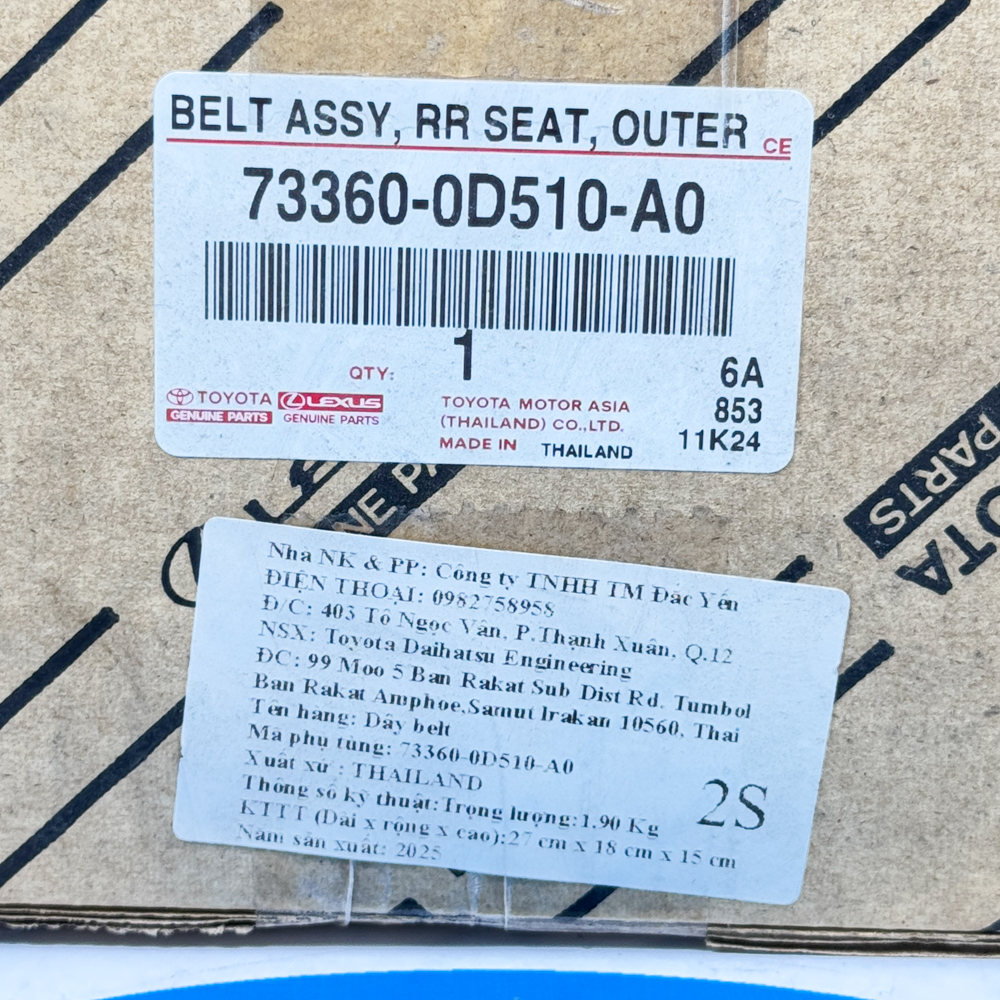 Dây Belt ( Đai An Toàn Sau ) Yaris 2023 73370-0D450-A0, 73360-0D510-A0