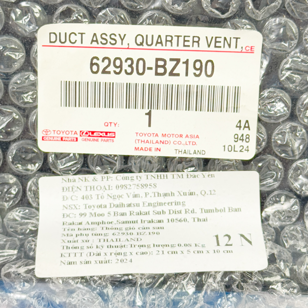 Thông Gió Cản Sau Yaris Cross 2023 62930-BZ190